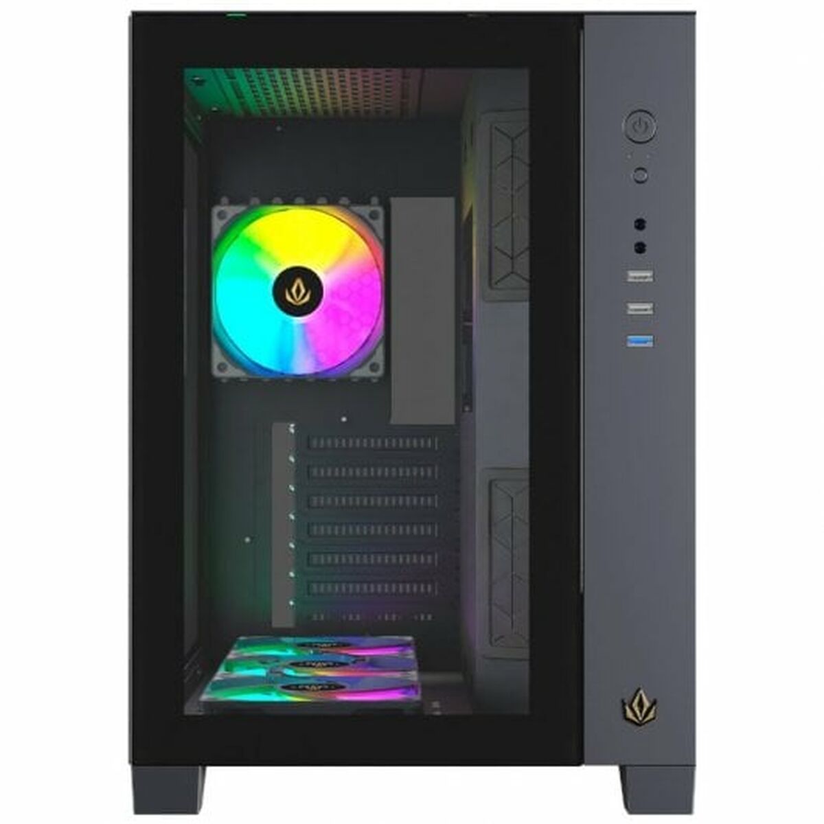Wenn Sie sich leidenschaftlich mit IT und Elektronik beschäftigen, mit der Technologie auf dem neuesten Stand sein wollen und nicht einmal die winzigsten Einzelheiten auslassen, kaufen Sie ATX Semi-Tower Gehäuse Forgeon Tiberium Schwarz.