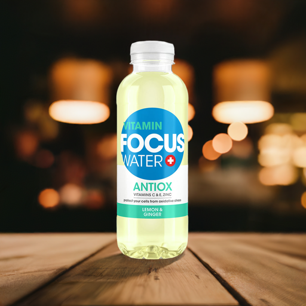 Dieses Schweizer Vitaminwasser mit Zitronen-, Limettenfruchtsaft und Ingwer-Extrakt, FOCUSWATER ANTIOX, ist perfekt, um deinen Elektrolythaushalt aufzufüllen. Natürliche Zutaten wie Ingwer, Limette und Zitrone verleihen dir mehr Energie und unterstützen die Entgiftung des Körpers. Die enthaltenen Vitamine C und E sowie Zink schützen die Zellen vor oxidativem Stress. Hol dir dein natürliches Fitnessgetränk und decke 75% deiner Tagesdosis an Vitaminen ab. Swiss Made, kalorienarm, ohne künstliche Zusatzstoffe.