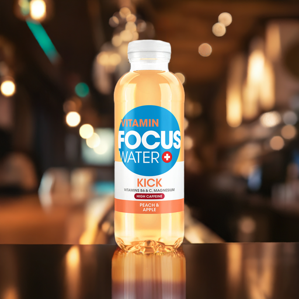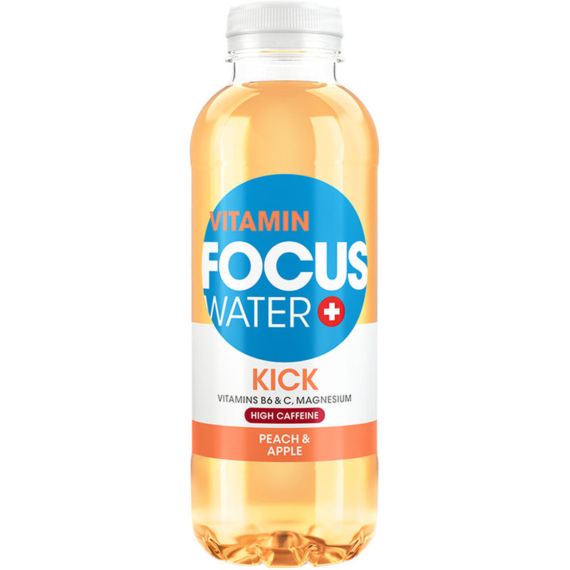 Hole dir den natürlich erfrischenden Energiekick mit FOCUSWATER KICK, dem Schweizer Vitaminwasser mit Pfirsich- und Apfelfruchtsaft, natürlichem Koffein und wichtigen Vitaminen und Mineralien. Mit 75% der empfohlenen Tagesdosis an Vitamin B6, C und Magnesium hilft es, Müdigkeit zu reduzieren und für natürliche Energie zu sorgen. Swiss Made, kalorienarm und ohne künstliche Zusätze.