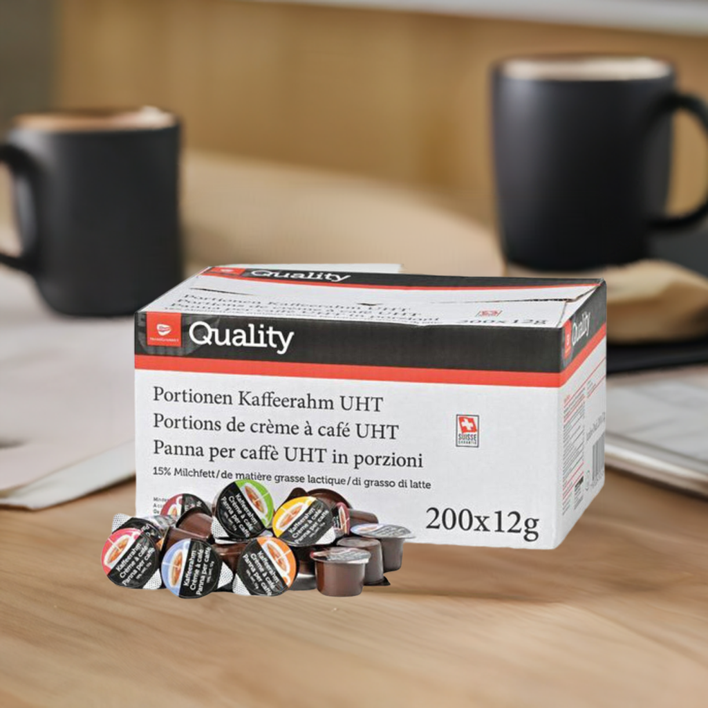 Unsere Kaffeerahm-Portionen sind die perfekte Ergänzung für jeden Kaffee. Mit 12 g pro Portion und in einer Packung von 200 Stück bieten sie ein unschlagbares Preis-Leistungs-Verhältnis. Ideal für den Arbeitsplatz, das Restaurant oder zuhause. Genießen Sie Ihren Kaffee wie nie zuvor.